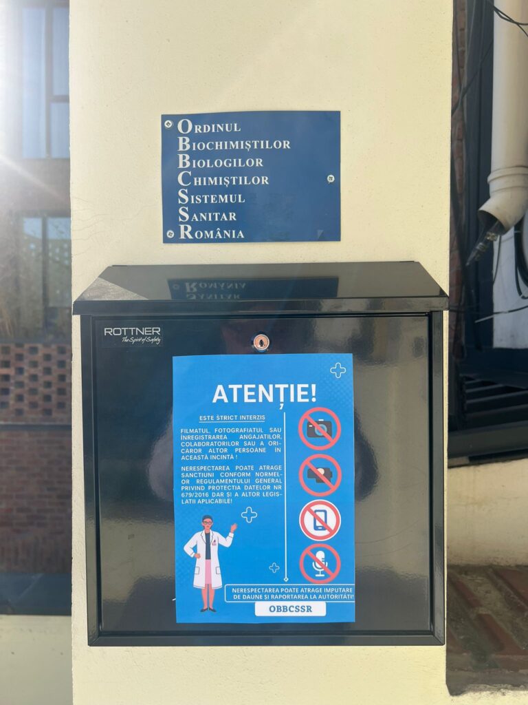 PUTEȚI PUNE în cutia poștală a OBBCSSR  orice document doriți a transmite la sediul OBBCSSR altfel decât cu poșta clasică sau rapidă; un angajat salariat al OBBCSSR verifică și ridică zilnic corespondența din cutia poștală. Pe cutia poștală a OBBCSSR se afla un afiș pus la solicitarea firmei care este Responsabilul OBBCSSR pentru respectarea Regulamentului și a legislației privind protecția datelor cu caracter personal (GDPR). Este interzisă prin lege filmarea sau înregistrarea audio şi difuzarea acestora, inclusiv urmare a unei discuții purtate la interfon, a angajaților, colaboratorilor sau a altor persoane care lucrează pentru OBBCSSR în incinta în care se află sediul OBBCSSR pentru că datele biometrice inclusiv vocea unei persoane, constituie o dată cu caracter personal conform Regulamentului General privind Protecția Datelor (GDPR).
