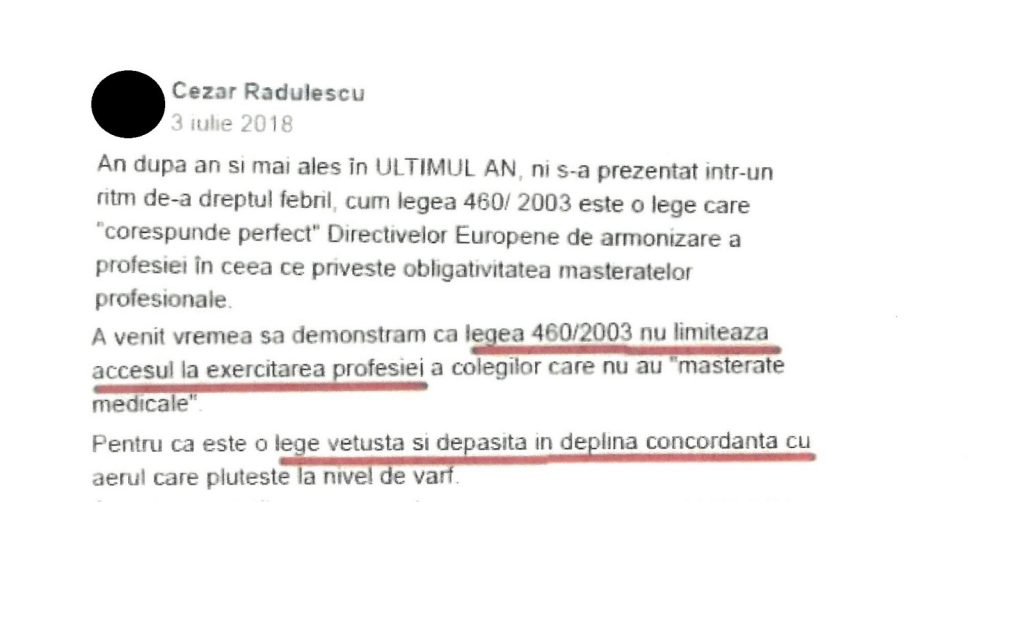 Membri actuali ai OBBCSSR au exprimat opinia sau acordul pe grupul de facebook “ ASOCIATIABBC” ca Legea 460/2003 este “ o lege vetusta si depasita” – vezi FOTO.